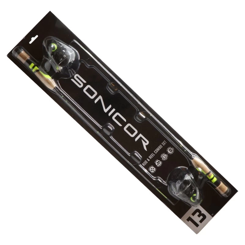 13 Pêche Sonicor Ice Combo 2 pack 24 »ML / 24 » UL. 13 Fishing Sonicor ice combo est un ensemble familial parfait, 2 ensembles de canne et de moulinet sont tous deux de longueur égale 72 cm 2 mais des réactions différentes Medum light et light.