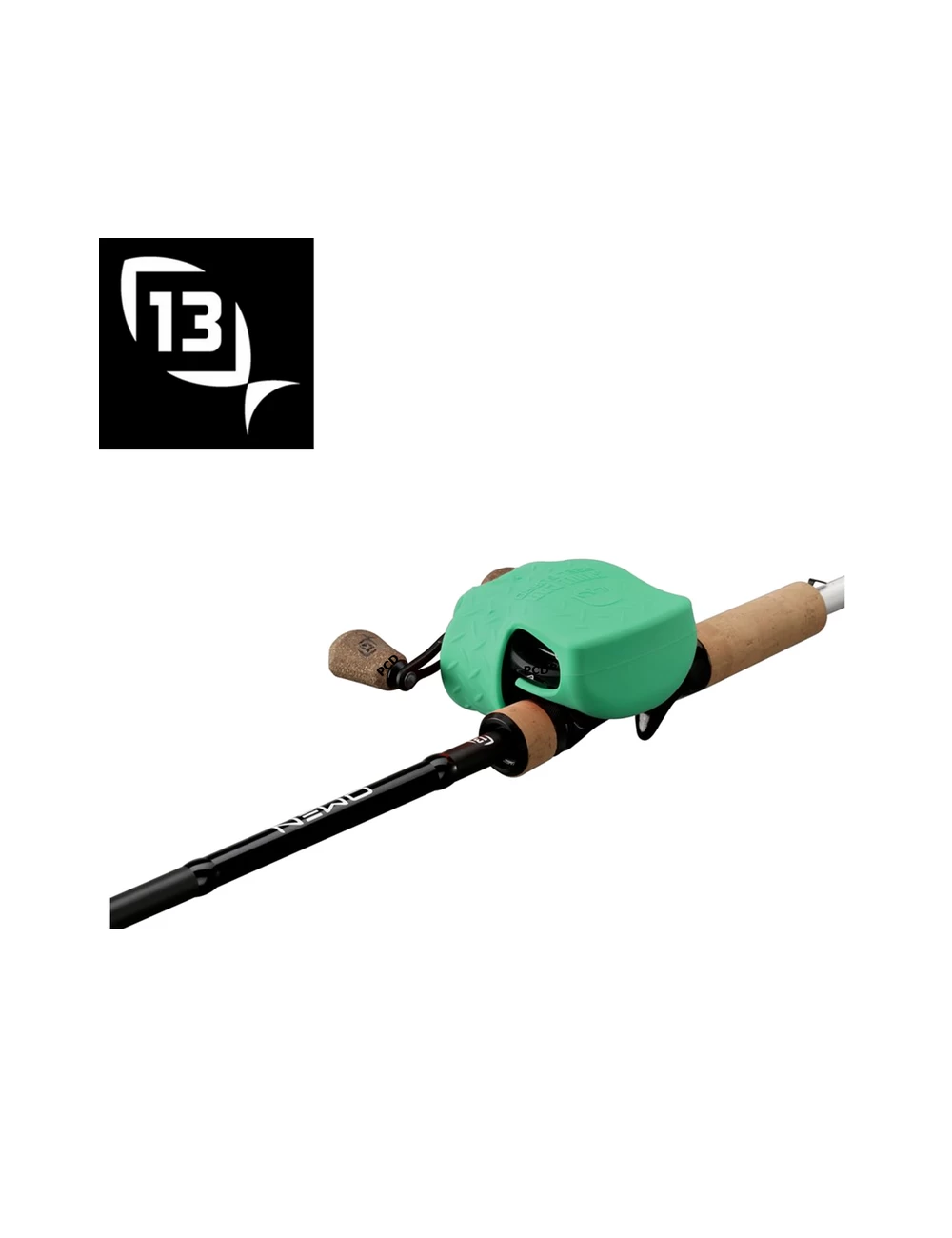 La housse Skull Cap Reel Guard, de marque 13 Fishing, est conçue pour se fixer autour de la canne et convient pour les moulinets gauchers comme droitiers.